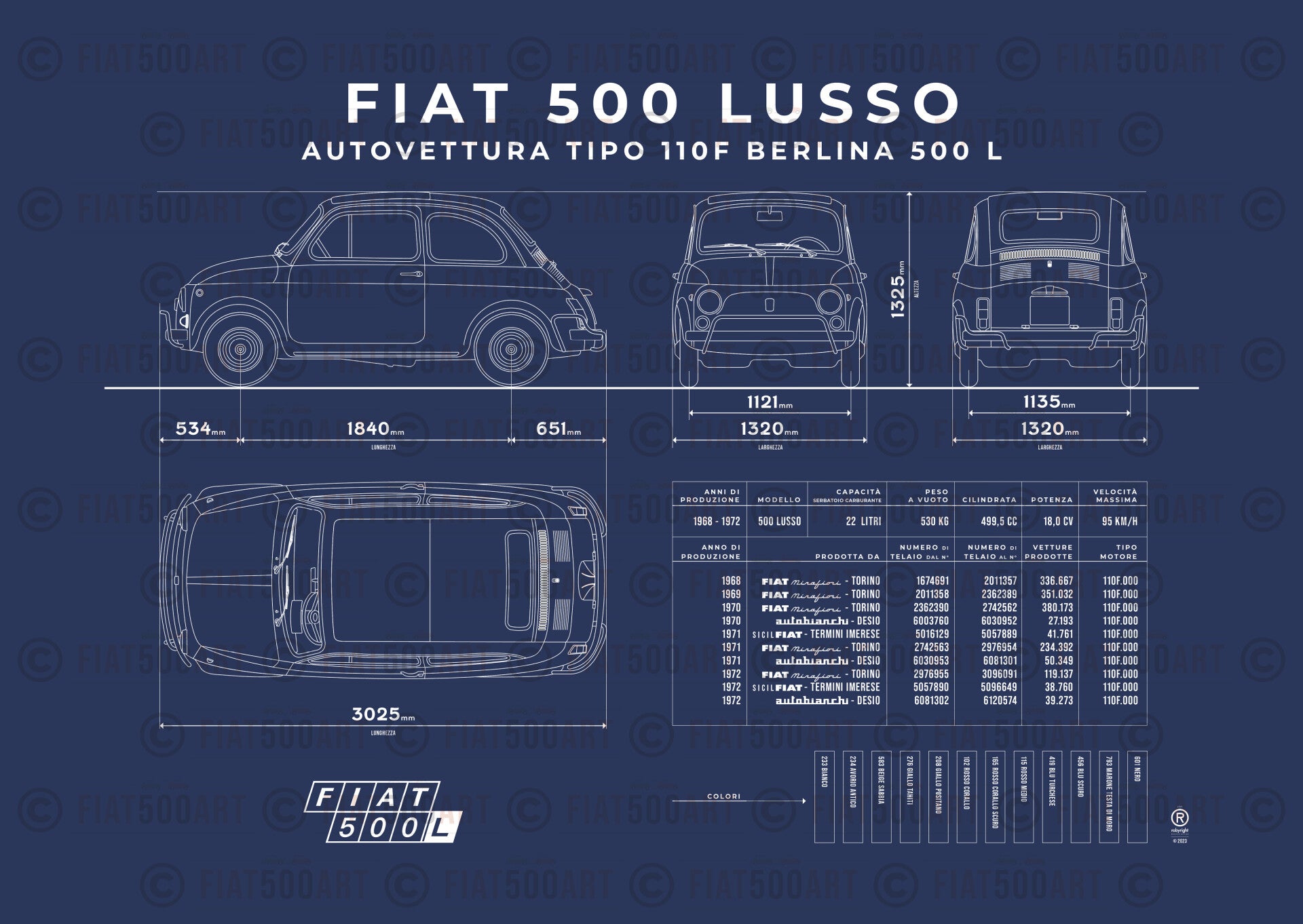 Questo poster è una cianografia della vostra Fiat 500 preferita.